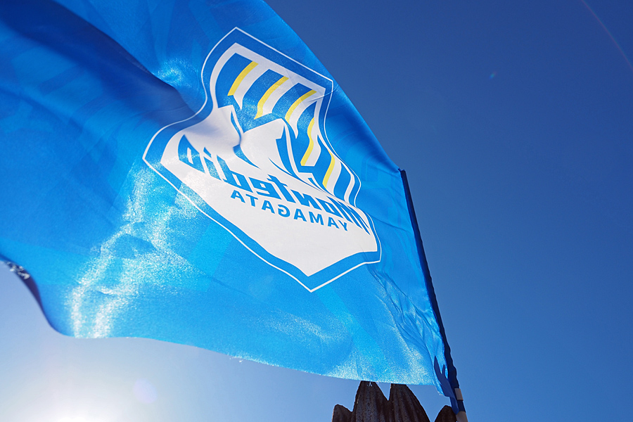 ![]() 神輿が渡御に出発し、 狛犬に括りつけられたモンテディオのフラッグが青空にはためく。 さすがモンテディオが毎年祈願する神社だなと感嘆する。 |
