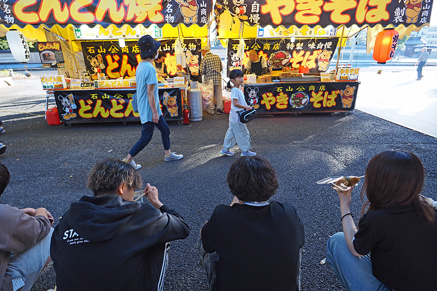 ![]() 露店と向かい合って並んで食べる。 これが若者たちの今流の食べ方なのか? |