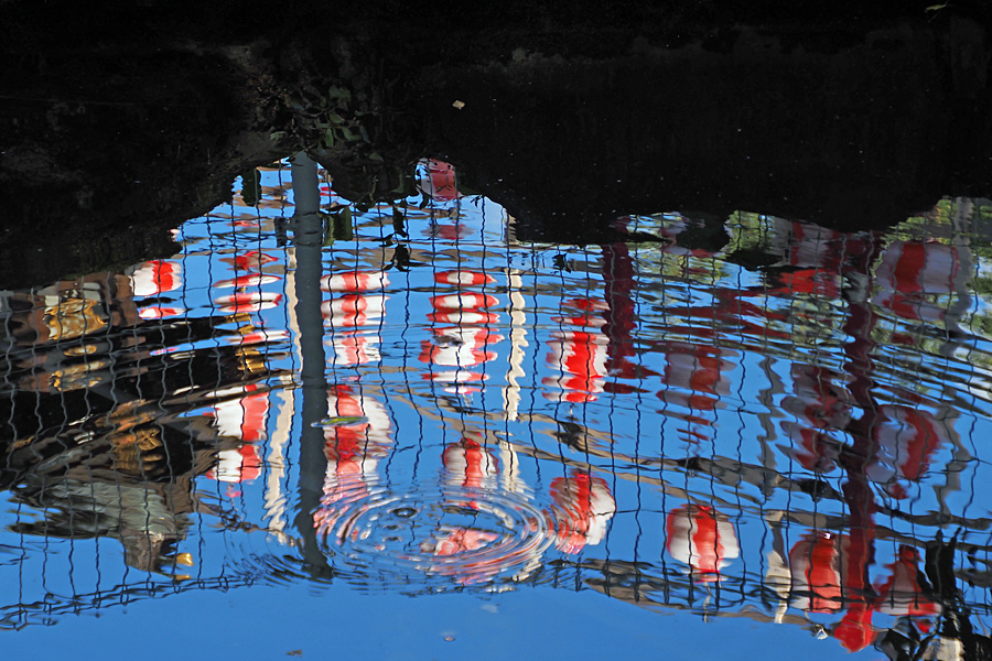 ![]() 魚たちが水面で口をパクパクさせるときだけ、 波紋ができて提灯が軟体動物の様に揺れ動く。 |