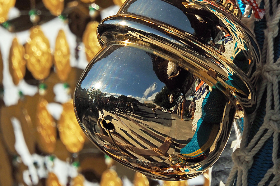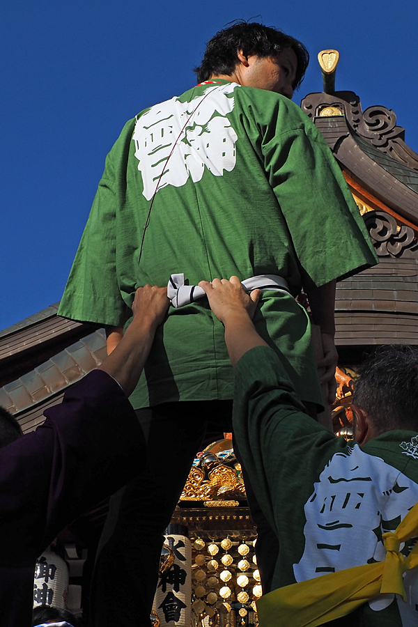 ![]() 新調して前よりずーっと立派になったお神輿の、今回はお披露目でもあるらしい。 ぶら下がった鈴もまだ世間に慣れていないのか、ややはにかみつつも境内をぐるりと映している。 |