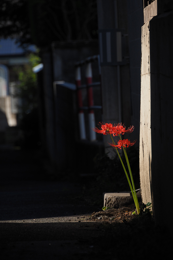 ![]() 彼岸花に別れを告げ、ちょっと気になって振り向いてみる。 そうだったのか。あの部分に陽が指すのは一日のうちほんの数十分がいいところ。 家並の隙間から漏れる光りを求めて咲いていたんだ。 「まぶしぐないが?」なんて聞くのは間違っていた。 彼岸花にとっては自分の輝けるほんのわずかな時間だったのだから。 |