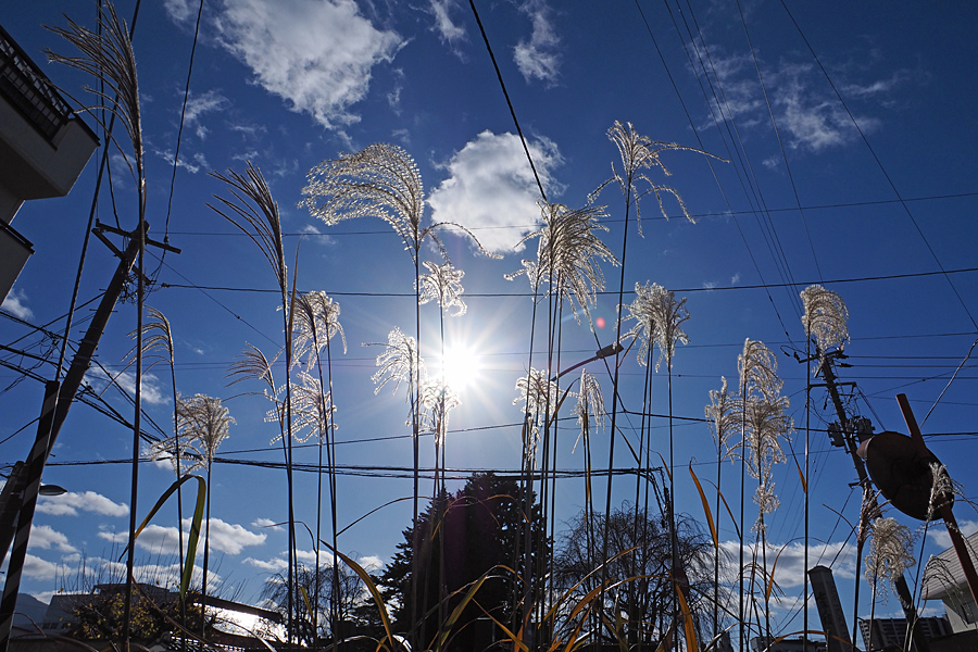 ![]() 光明寺前のススキは直立して雲たちへ一心不乱に手を振るばかり。 |