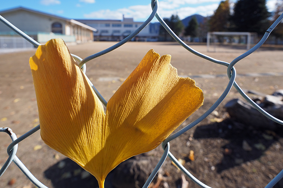 ![]() 銀杏は四小のシンボル。 でもここは五小。 銀杏の葉っぱは姉妹校にならねがと、はるばるフェンスまで辿り着いたか? |