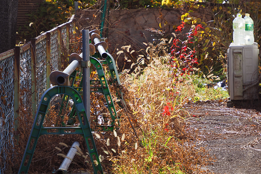 ![]() 雑多な美とでもいおうか。 「雑然としてでもなんだが心が和むのよねぇ」 見向きもしない雑然を初冬の日差しは見事に芸術へと昇華させたんだなぁ。てがぁ。 |
