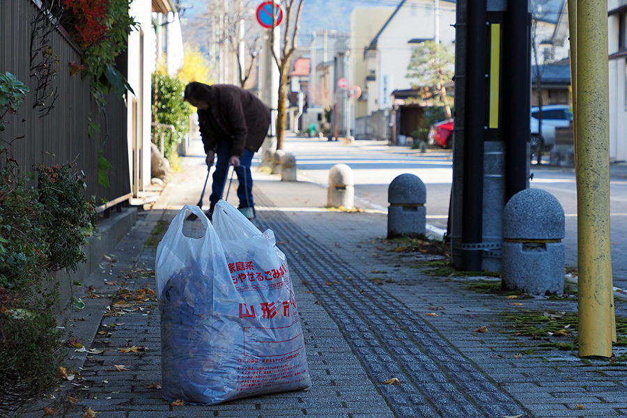 ![]() 山形市専用の「もやせるごみ袋」をみて思った。 毎年毎年葉は落ちる。 そして毎年毎年その葉はゴミとして捨てられる。 このままでは町中が沈下してしまわねんだべが? |