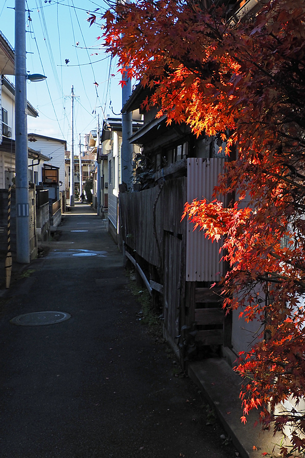 ![]() 小路の隙間からわずかに漏れる光りに紅葉たちは大はしゃぎ。 |