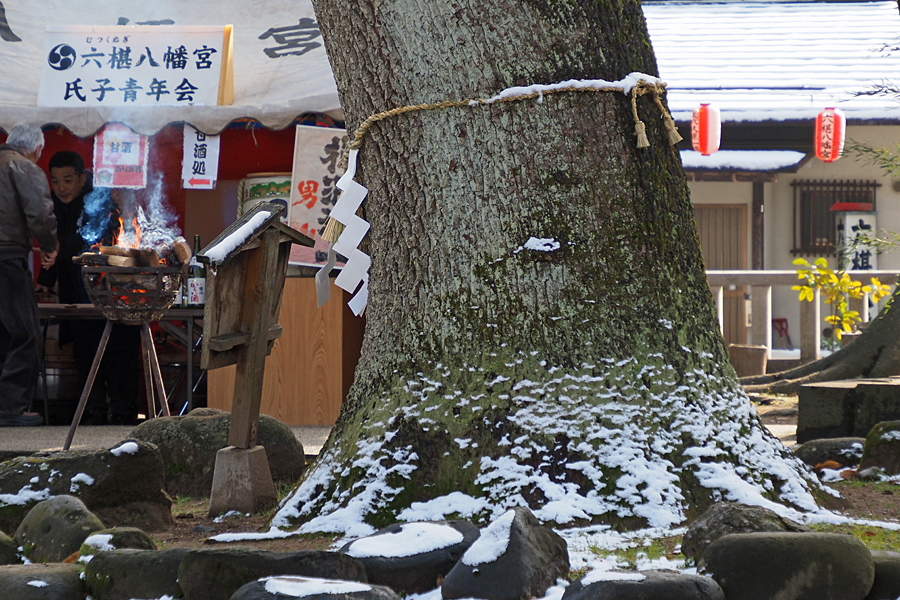 ![]() ご神木も篝火に手をかざしたいような体の傾き。 「体幹は大丈夫だべげんと、あんまり無理すねでな」 |