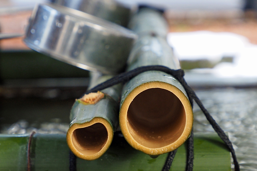 ![]() 「オゥーーーーづめだいぃ〜!」 「ヴェーーーーづべだいぃ〜!」 手水舎の柄杓置き場で震える竹兄妹。 口の開き方で声も違っていることにお気づきだろうか。 |