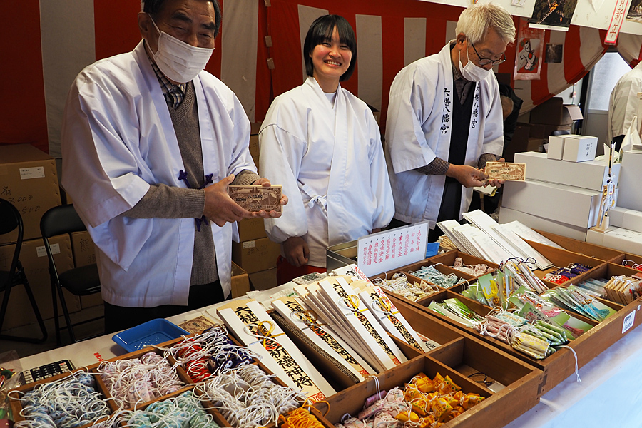 ![]() 笑顔で迎えられ気分の悪いはずもない。 氏子さんたちは目の前のお守りやお札よりもただで頂ける八万縁札を勧めてくる。 |