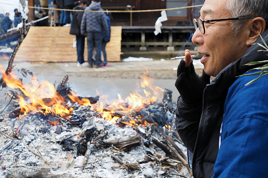 ![]() 「寒いどぎはやっぱりタバコよぅ」 「禁煙教室さも行ったげんとなぁ」 苦笑しながらの一服は至福の一服。 |
