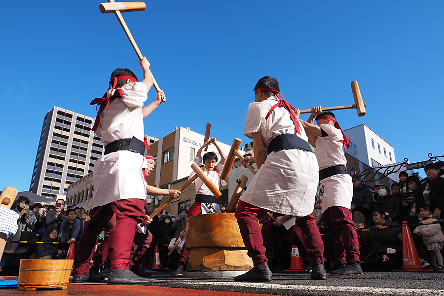 ![]() スカッと広がる青空の分子も取り込んで、 杵は餅にうま味を打ち付ける。 |