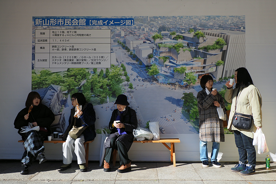 ![]() 「新しい市民会館てどだな風にできるんだべねぇ?」 「はえずぁ、今までの山形さないっけ風にできんのっだな」 みんな何か飲みながら食べながら未来を語り合う。 |