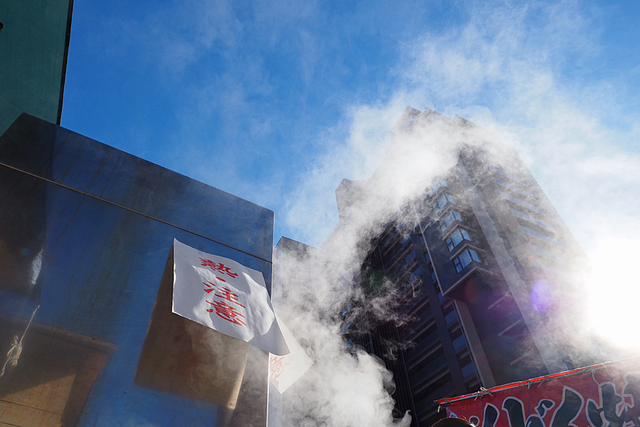 ![]() ビルが煙に巻き込まれる。 熱・注意のビラが風にはためく。 こりゃ大変だと思ったら、十一屋の酒まんじゅうの湯気だった。 |