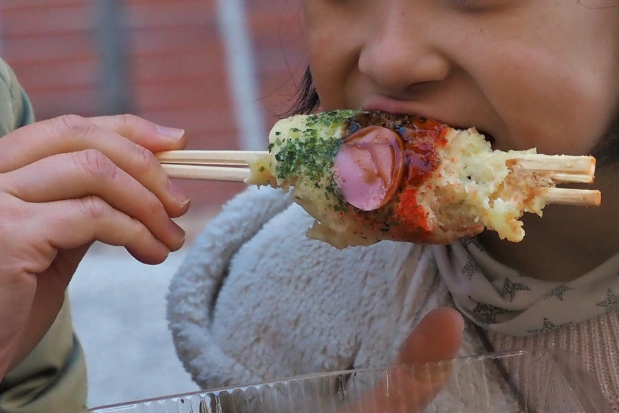 ![]() 「あたしは一本だげぇ?」 「細く長ぐっだな」 「がばちょと挟んで食ってもいいんだじぇ」 「ううん、遠慮しとく」 「ほだごどして食ったら冷めでしまうべな」 親子の会話に整合性はないが、暖かい交流はある。 |