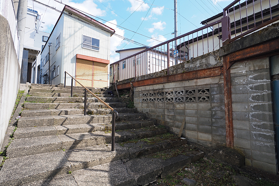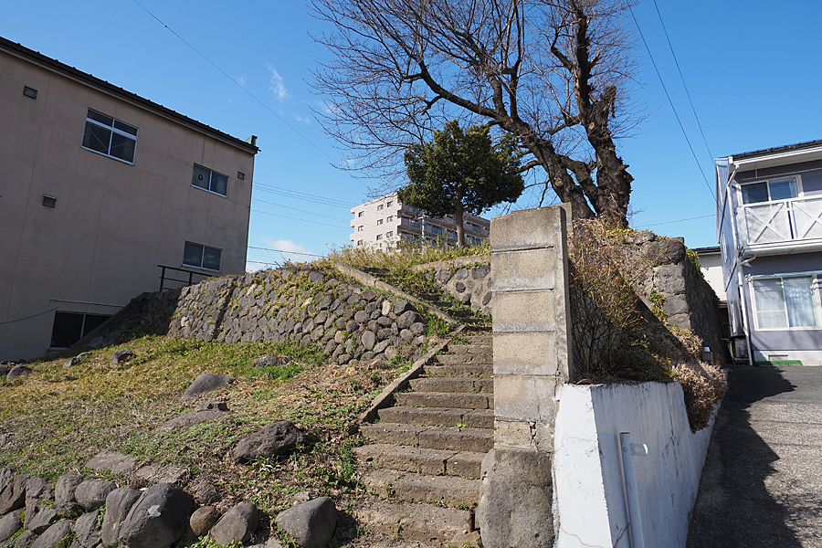 ![]() 三の丸跡地の階段を降りる。 駅前の歌懸稲荷裏の三の丸土塁は有名だが、こちらは無名。 |