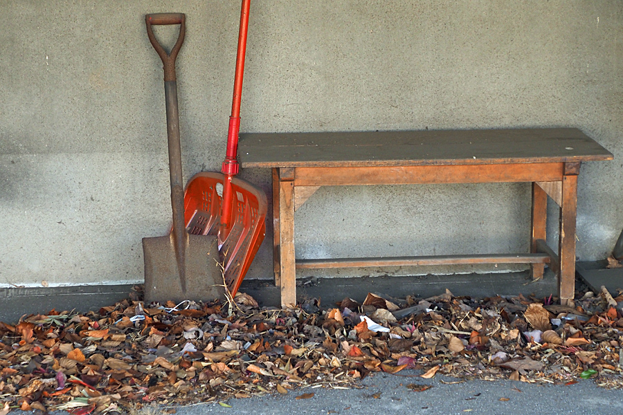 ![]() 「誰が落ち葉ば片づげんのや?」 プラスチックの雪かきはいう。 「俺はスコップだがら土掘るだげ」 錆びたスコップは素っ気ない。 「俺だて雪かきしかしたごどないし」 二人の間に沈黙が漂い、お互いに協力してするしかないかと思うまでもう少し。 |