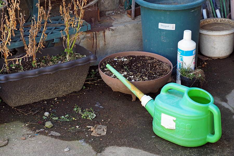 ![]() 「お前が水掛けでけねがら、おらだはこだなごどなたどりゃあ」 プランターの枯枝たちは如雨露を責めるように睨む。 如雨露はたじろぎながらも正面を向く。 「おだぐだは去年に一生が終わてんの。いつまでも現世さたづいでいねで早ぐ土に還れはぁ」 |