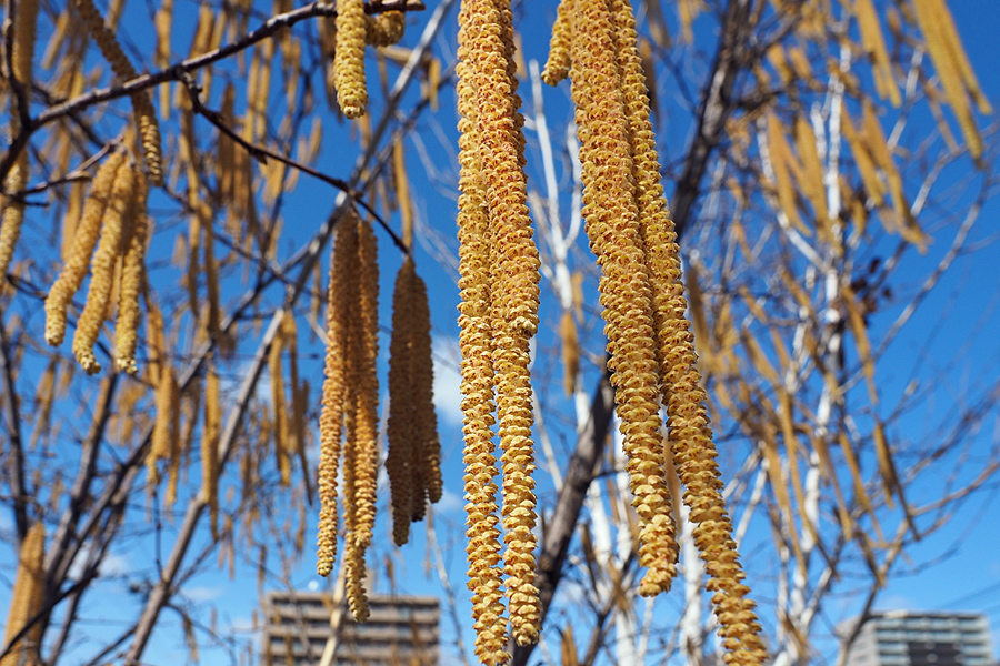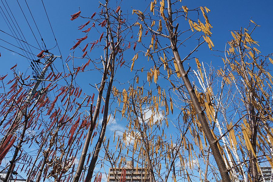 ![]() 「うわっ、まだ七夕んねんだがら」 見上げれば空から驟雨のごとく房たちが降り注ぐ。 なんとも人騒がせなハンノキでした。 |