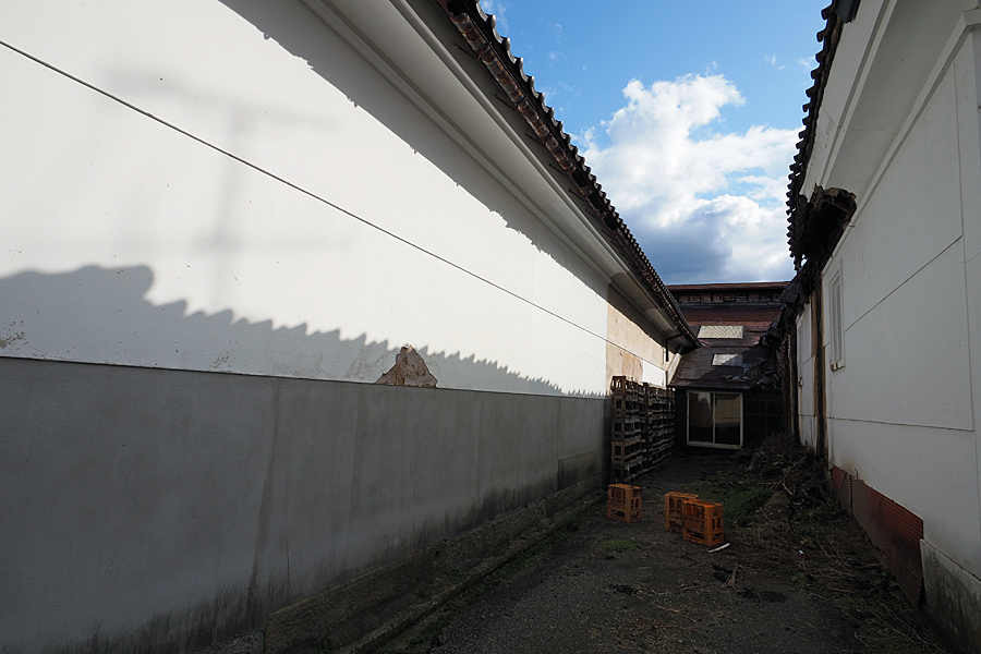![]() 横断歩道を渡る際、チラッと横目で見た早咲きで有名なあじやま桜はまだ蕾だった。 もちろん梅ですらちゃんと咲いていないのに桜など咲こうはずもない。 そこであじやま醤油屋さんの裏手へ周ってみる。 細長い蔵の隙間を流れる雲が少しばかり春らしくなってきた。 |