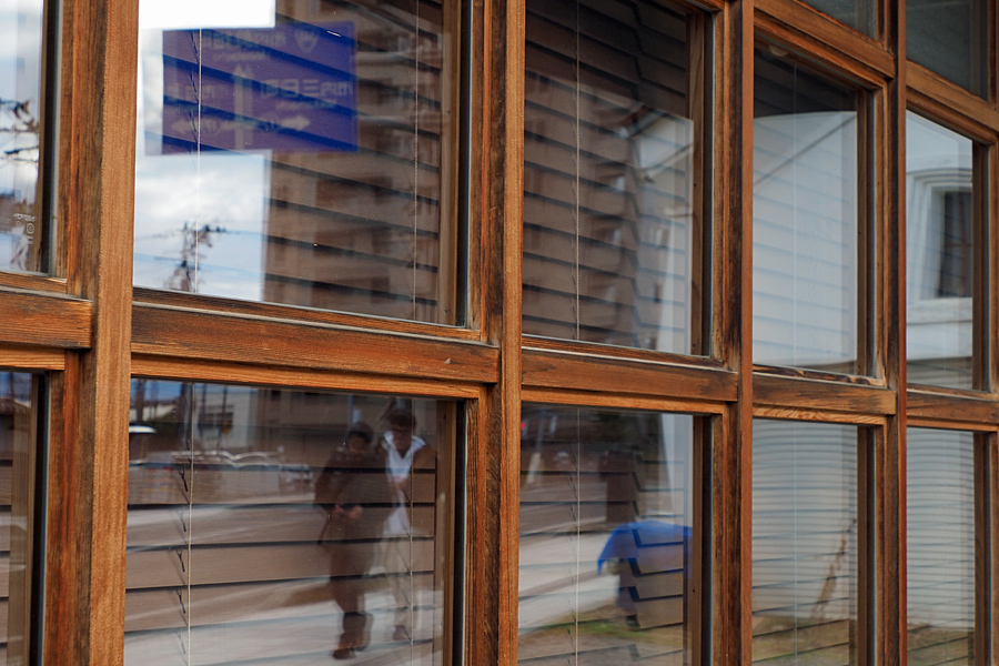 ![]() ガラスに映る街並みをよっくどみれば、 青い標識に三日町の地名が見える。 その下を未だに冬の恰好をした二人がくっついて駅方面へ歩いていった。 |