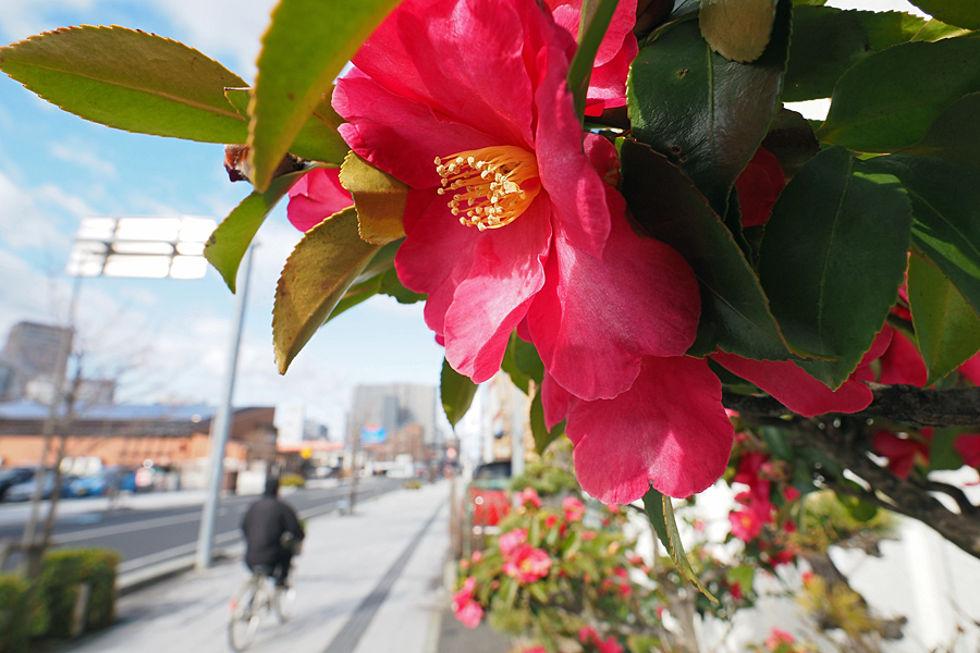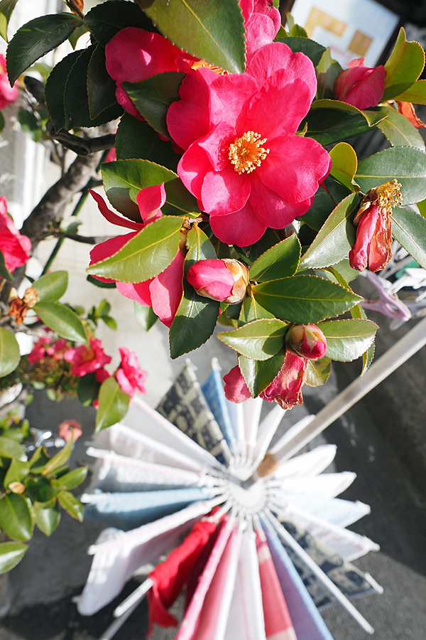 ![]() パッと咲いた椿は、ぱっと開いたタオルの洗濯ものを見下ろして目をしばたたかせる。 |